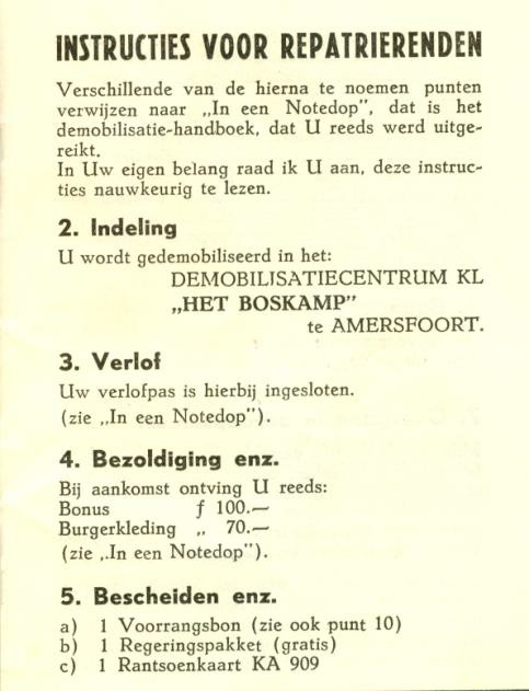 In 1951 werd op Beloken Pasen door de Gemeente Huissen een reünie georganiseerd voor de Indië veteranen en in 1952 heb ik het ereteken voor orde en vrede ontvangen, uitgereikt door burgemeester dhr.F.Terwindt van Huissen.